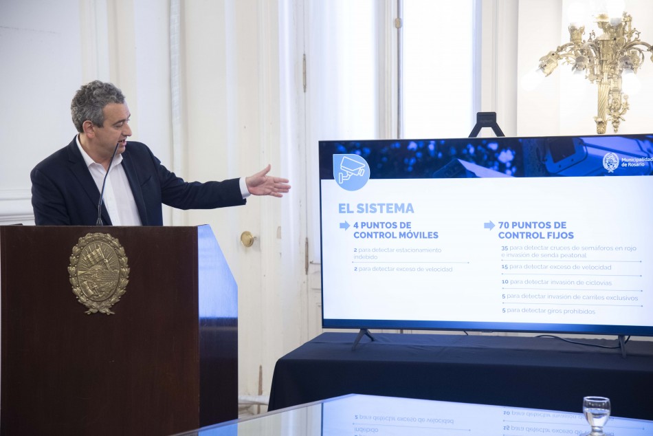 El intendente municipal Pablo Javkin presentó el nuevo sistema de video control. En diálogo con los medios dijo: “Muchos de ustedes lo llaman fotomultas, pero es mucho más que eso. Es un sistema con tecnología que la ciudad nunca había tenido, que no solo nos va a servir para ordenar el tránsito, sino también para realizar un aporte importante a la ciudadanía”.